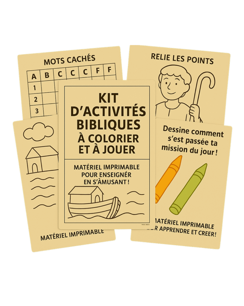 Pages imprimables avec dessins bibliques, défis, labyrinthes et jeux qui aident les enfants à renforcer leurs apprentissages de manière ludique.